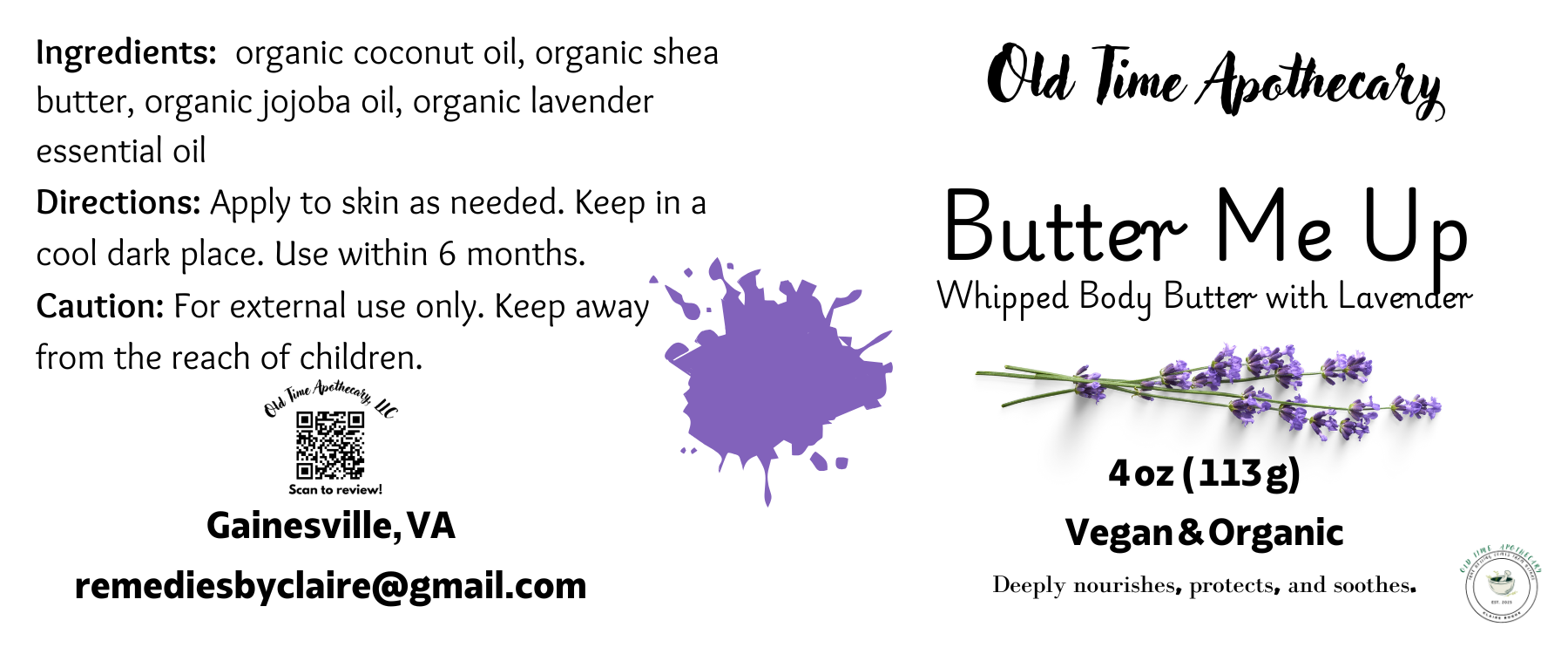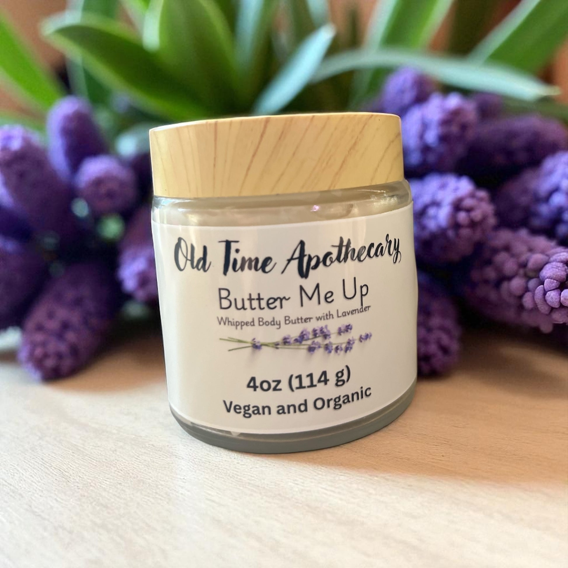 A whipped body butter handcrafted with organic Shea butter, organic coconut oil, organic jojoba oil and organic lavender essential oil.